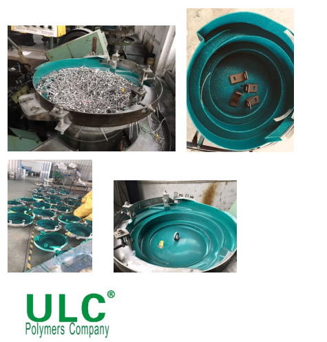 随着工业自动化的程度越来越高,振动盘自动上料在每个制造行业都应用到,ULC弹性体系可以根据上料工件特点选择不同的硬度,满足振动盘上不同的料摩擦力的要求,特别是五金工件的振动盘,五金件可能带有柴油、机油或煤油等矿物油,带毛刺的重的五金件对振动盘的磨损更为严重,而且噪音会更大,为了防止重的工件吸死,弹性涂层表面可以喷出多种粗糙度的麻点,为了方便振动盘表面的清洁,弹性体涂层可以耐多种有机溶剂擦洗。针对以上特殊工况,ULC弹性体有如下优势:
