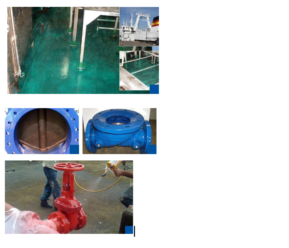 可喷涂的弹性装饰涂层能增加防滑性能。无缝平整的表面提升整洁度的同时也使得食品加工区和储藏室更加卫生,长时间防冲击、防腐蚀,保护甲板。海水对阀门的腐蚀对船舶的安全构成极大威胁,可喷涂弹性涂层从内到外保护工件免受海水侵蚀。能抵抗PH值从1到13的化学腐蚀。不粘,任何颜色可供选择。