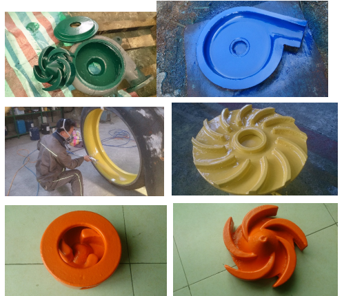 渣浆泵的过流部件(叶轮、护板和泵壳)的磨损涉及到的因素较多,矿粒高速运动带来的切削磨损,化学腐蚀,汽蚀。ULC体系弹性体可以在这种严酷的工况下给工件提供保护。